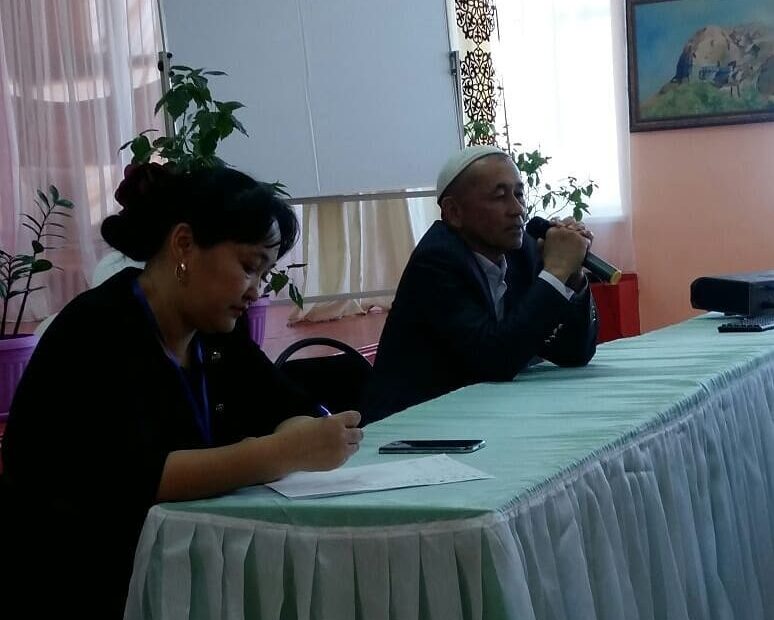 Мектебіміздің басшысы Тұрабаева Сара Нəрешбекқызы ардагер ұстаз Сəуірбаев Жақсылық ағаймен…Наурыз 5, 2018