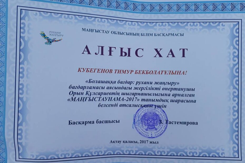 Рухани жаңғыру:Ақтау қаласында өткен “Маңғыстаунама-2017” танымдық шараға Жетібай ауылындағы $8…Қараша 16, 2017